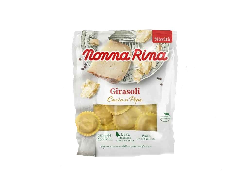 Čerstvé těstoviny girasoli plněné sýrem a špetkou pepře, Nonna Rina