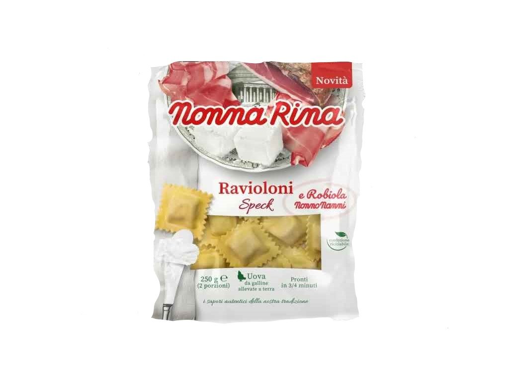 Čerstvé těstoviny ravioli plněné robiolou a špekem, Nonna Rina