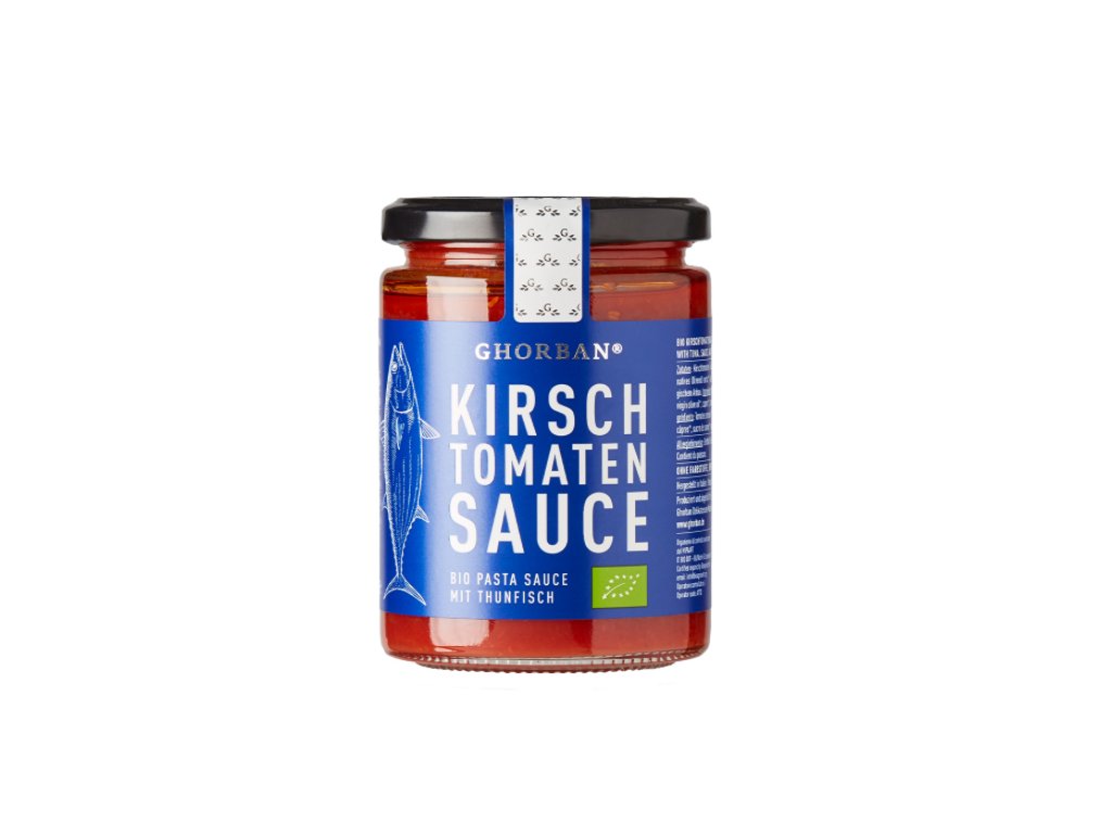 Vynikající čerstvě ulovený tuňák z udržitelného rybolovu a extra sladká sicilská organická cherry rajčata dodávají této omáčce z cherry rajčat sladkou chuť s jemnou rybí notou - bez přidaného cukru. Díky vysokému podílu odrůd rajčat více připomíná „passata“. Subtilní červená barva je typická pro naše ekologické pěstování rajčat, při kterém plody dostávají pouze 90% červené barvy. Olio di Oliva Extra Vergine Bio a trochu soli završují omáčku. Perfektní cherry rajčatová omáčka k rybím pokrmům, těstovinám s mořskými plody nebo přímo na chleba.