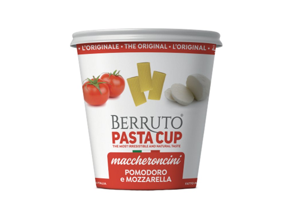 Těstoviny (krupice z tvrdé PŠENICE) 71,4%, bramborový škrob, SMETANA, rajče 4,3%, sůl, strouhaný SÝR, MLÉČNÉ BÍKOVINY, cukr, cibule, sušený tavený SÝR (dehydrovaný SÝR (MOZZARELLAa 0,8% hotového)), emulgační sůl: fosforečnan sodný, syrovátka), česnek, látky ochucovadla, byliny