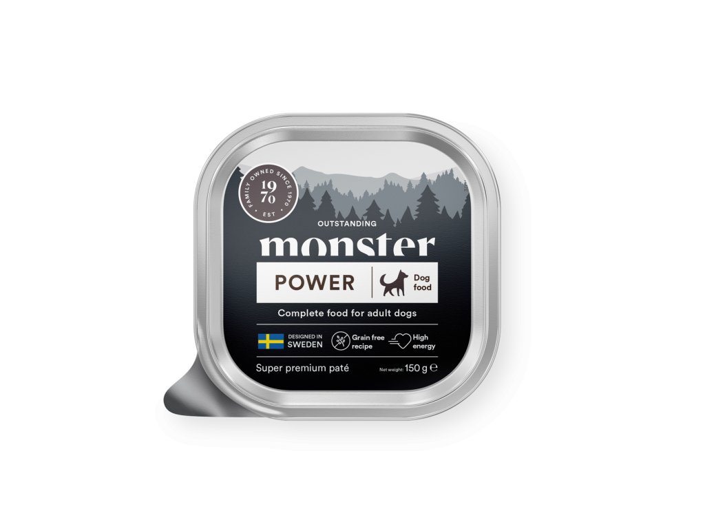 Monster Dog Power Paté je výživná masová paštika, která dodá vašemu psovi všechny důležité živiny a bílkoviny potřebné pro aktivní život. Jemná textura a výrazná vůně zaručují, že ji váš chlupáč bude milovat.