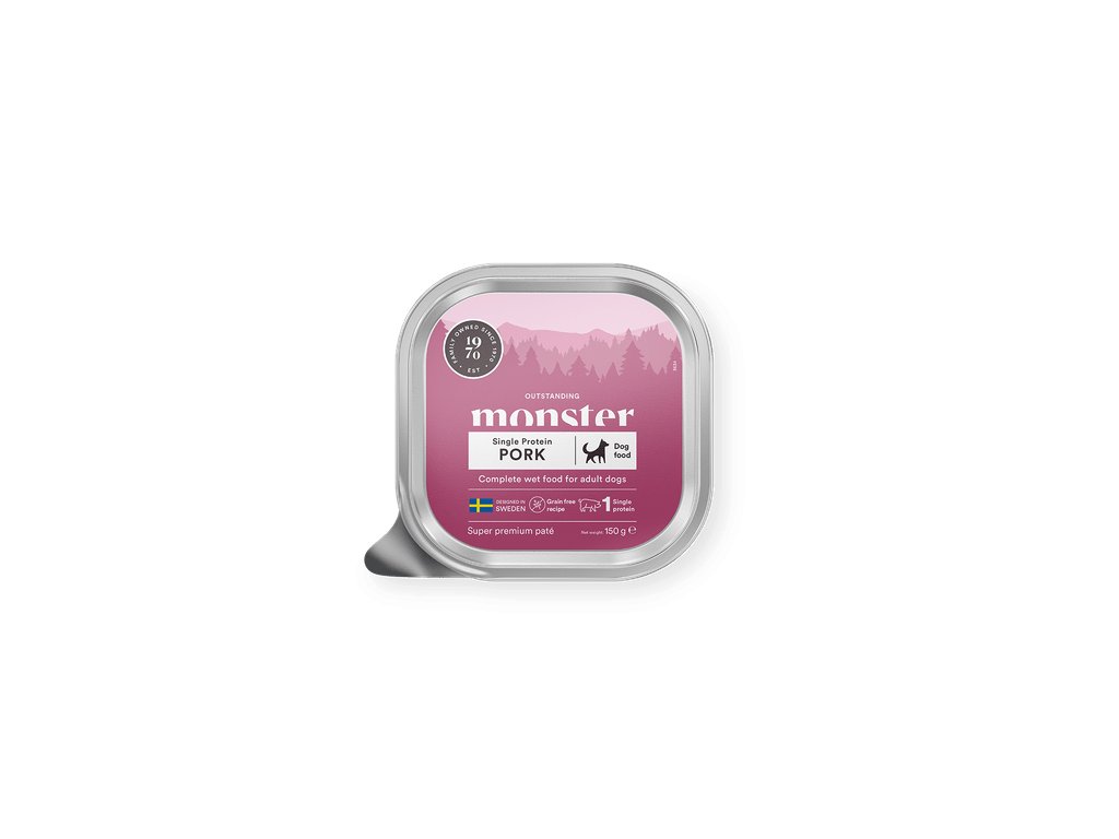 Monster Dog psí paštika – vepřová je výživná masová paštika z kvalitního vepřového masa. Jemná textura a bohatá vůně dělají z každé porce opravdovou pochoutku – vhodnou jako kompletní krmivo nebo doplněk ke granulím.