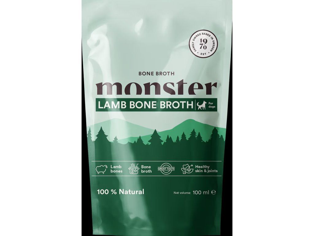 Monster Dog Vývar – jehněčí (100 ml) je přírodní doplněk stravy pro psy všech plemen a věku. Vyráběný pomalým vařením kvalitního jehněčího masa, zachovává přirozenou chuť i důležité živiny, které psi milují.