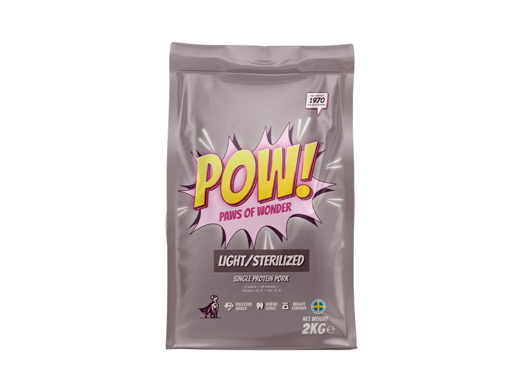 Psí krmivo Light/Sterilized 2 kg od POW! je kompletní a vyvážené krmivo speciálně vyvinuté pro sterilizované psy nebo psy se sníženou aktivitou či sklony k nadváze. Receptura se sníženým obsahem tuku pomáhá udržovat optimální tělesnou hmotnost a podporuje zdravý životní styl.