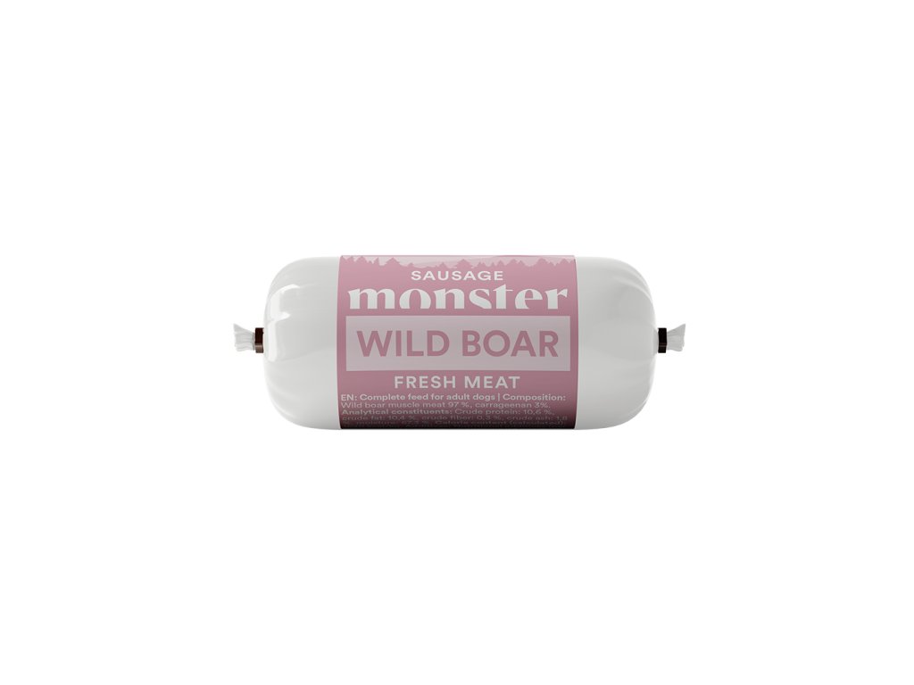 Monster Dog psí párky – divočák jsou poctivě masité pamlsky s vysokým podílem zvěřiny, které vašemu psovi dodají chuť i energii. Díky své přirozené vůni a měkké konzistenci jsou ideální jako odměna, svačinka na cesty nebo malý doplněk k dennímu krmení.
